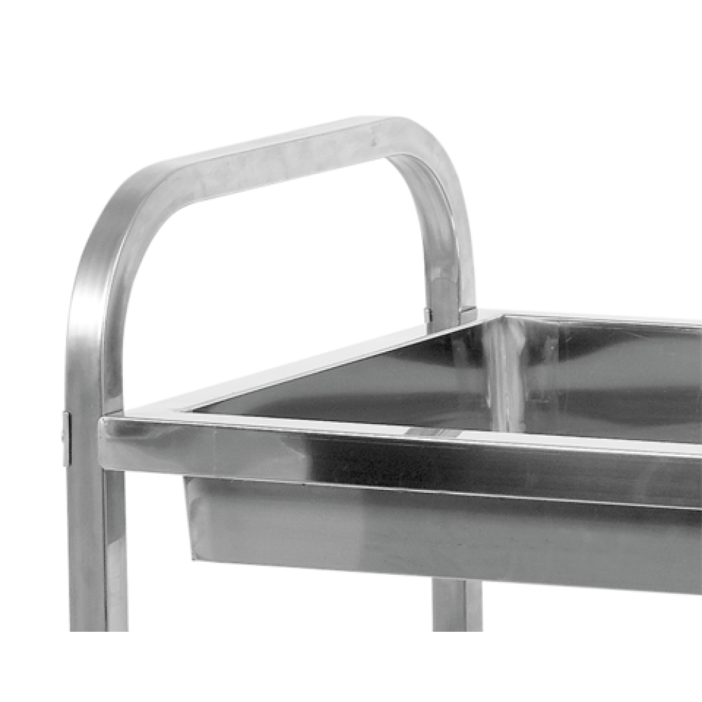 Тележка изготовлена из высококачественной нержавеющей стали. Это гарантирует устойчивость к ржавчине, обеспечивает высокую производительность, легко чистится и дезинфицируется. Под каждой полкой расположены звукопоглощающие коврики из специальной пены для уменьшения вибраций и шума, возникающих при транспортировке. Две большие полки размером 820 x 430 мм и глубиной 90 мм имеют специальную кромку, которая предотвращает скольжение продуктов во время транспортировки. Все края тележки закруглены, что еще больше повышает безопасность при использовании.