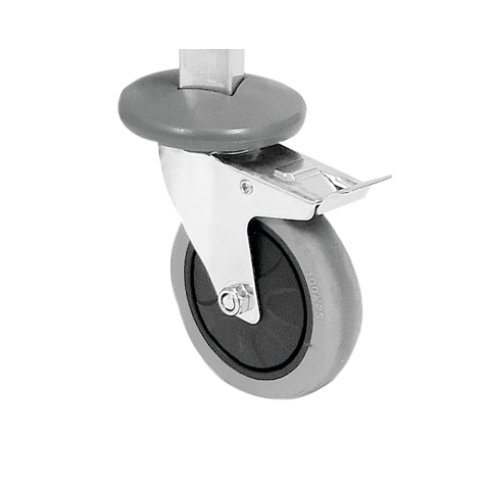 Тележка оснащена четырьмя высококачественными колесами с подшипниками и бамперами-отбойниками, предотвращающими порчу мебели и стен при столкновении. Использование крепкого, но гибкого материала обеспечивает очень тихую работу. Колеса устойчивы к царапинам и не оставляют следов на полу, а также вращаются на 360°, что позволяет маневрировать в труднодоступных местах и узких проходах. Два колеса также оснащены тормозами.